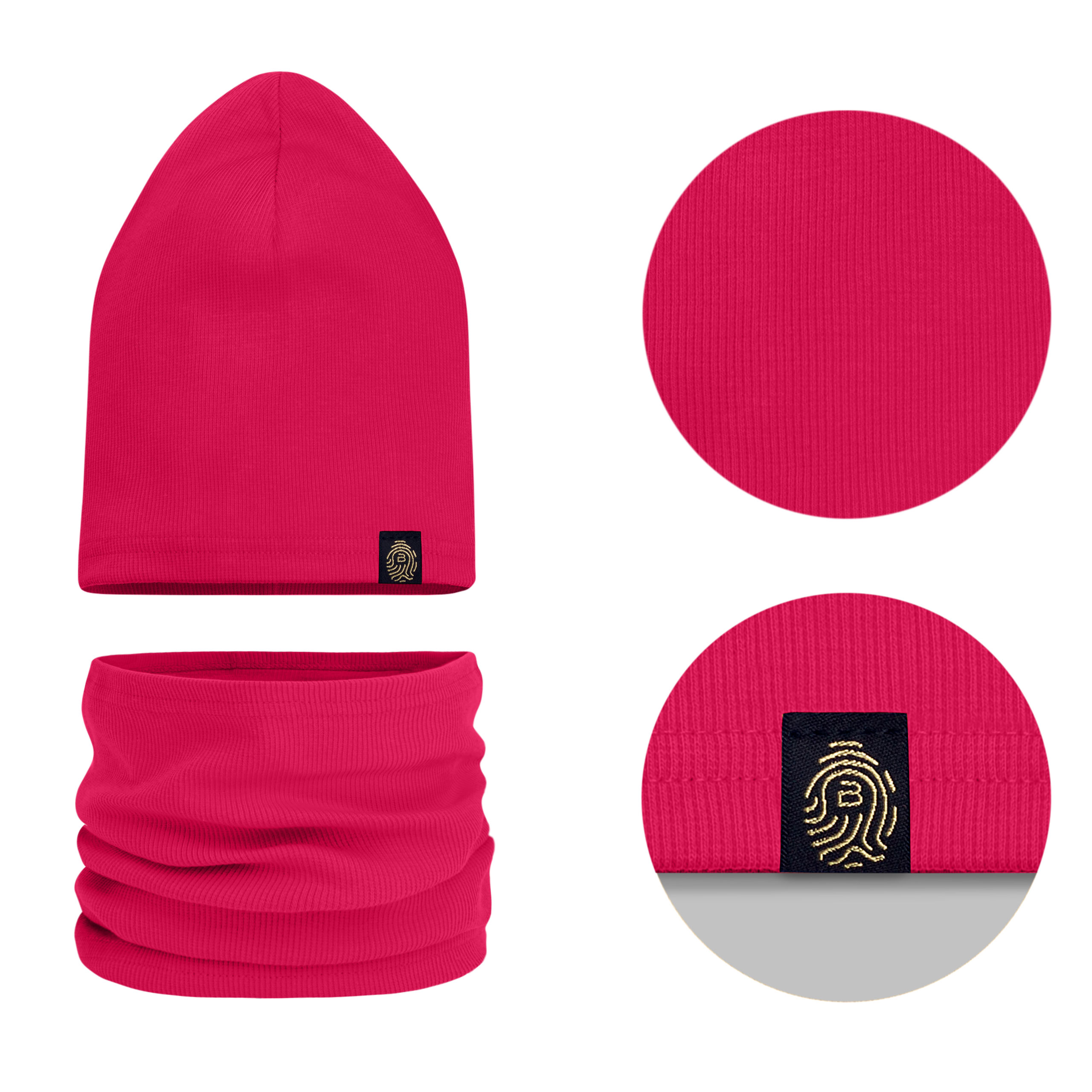 Oto praktyczny i pełen uroku komplet dla młodej damy lub dżentelmena. Uprzyjemni wiosenne i jesienne spacery oraz zabawy na świeżym powietrzu. Modny zestaw składa się z czapki oraz komina, w pięknym żywym odcieniu. Całość została wykonana z miękkiej i miłej w dotyku, jednowarstwowej bawełny o delikatnie prążkowanej fakturze. Materiał posiada atest i jest w pełni bezpieczny dla skóry dziecka.